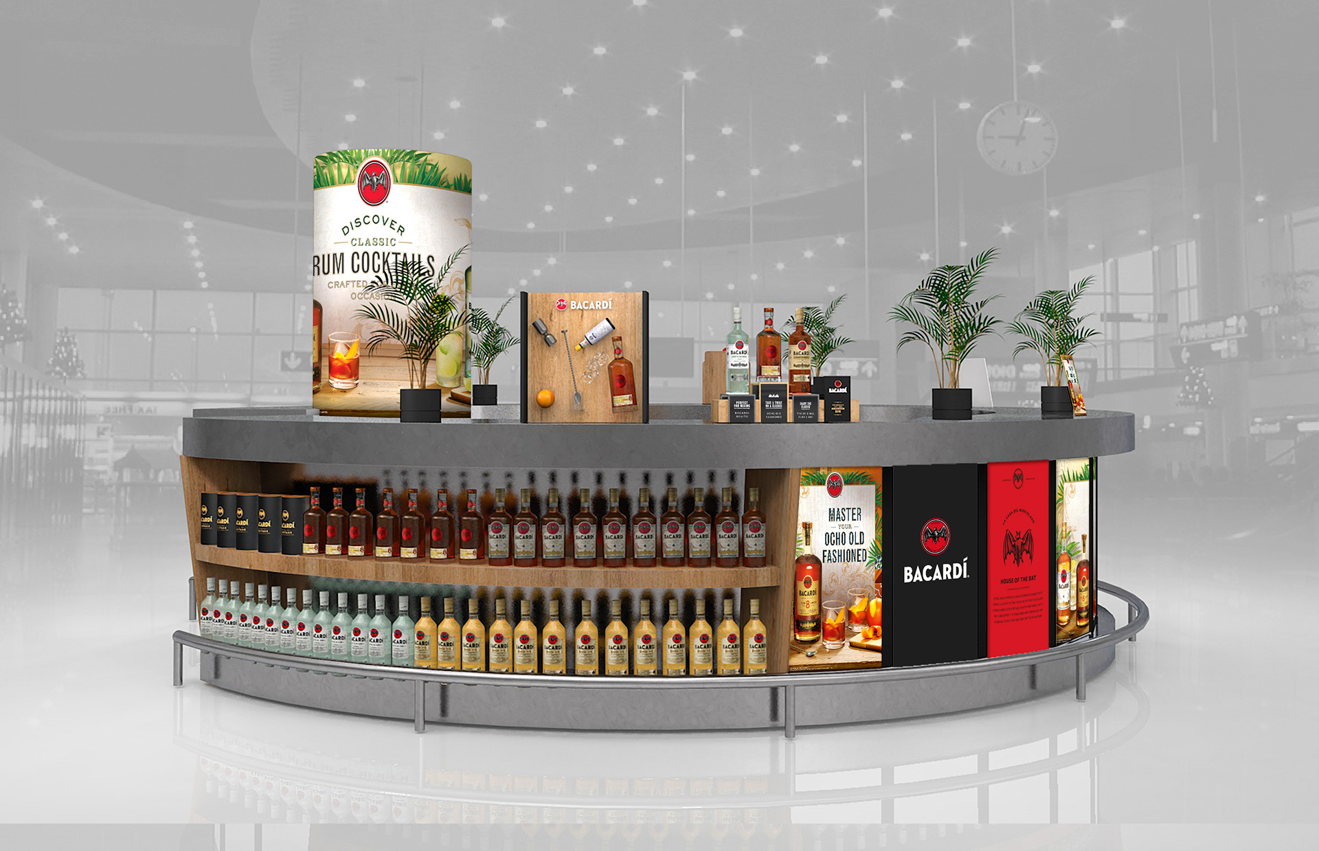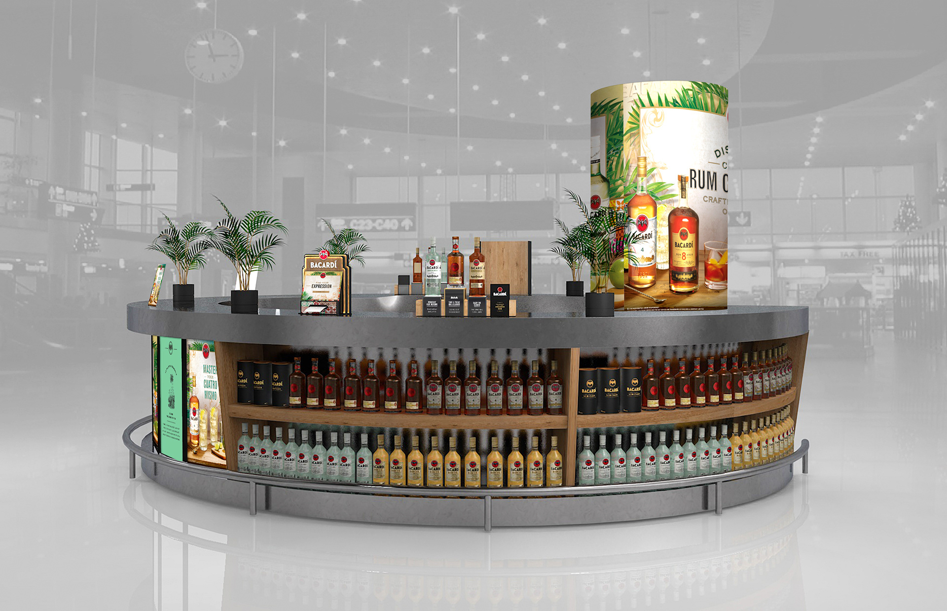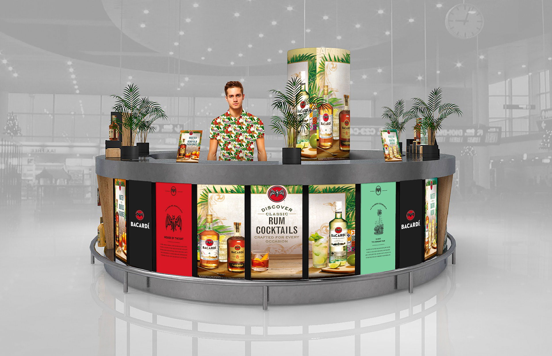 Bespoke brand graphics for this takeover of Gatwick Airport's south terminal bar. Includes creative use of photoshop heavy key visuals and artwork production.