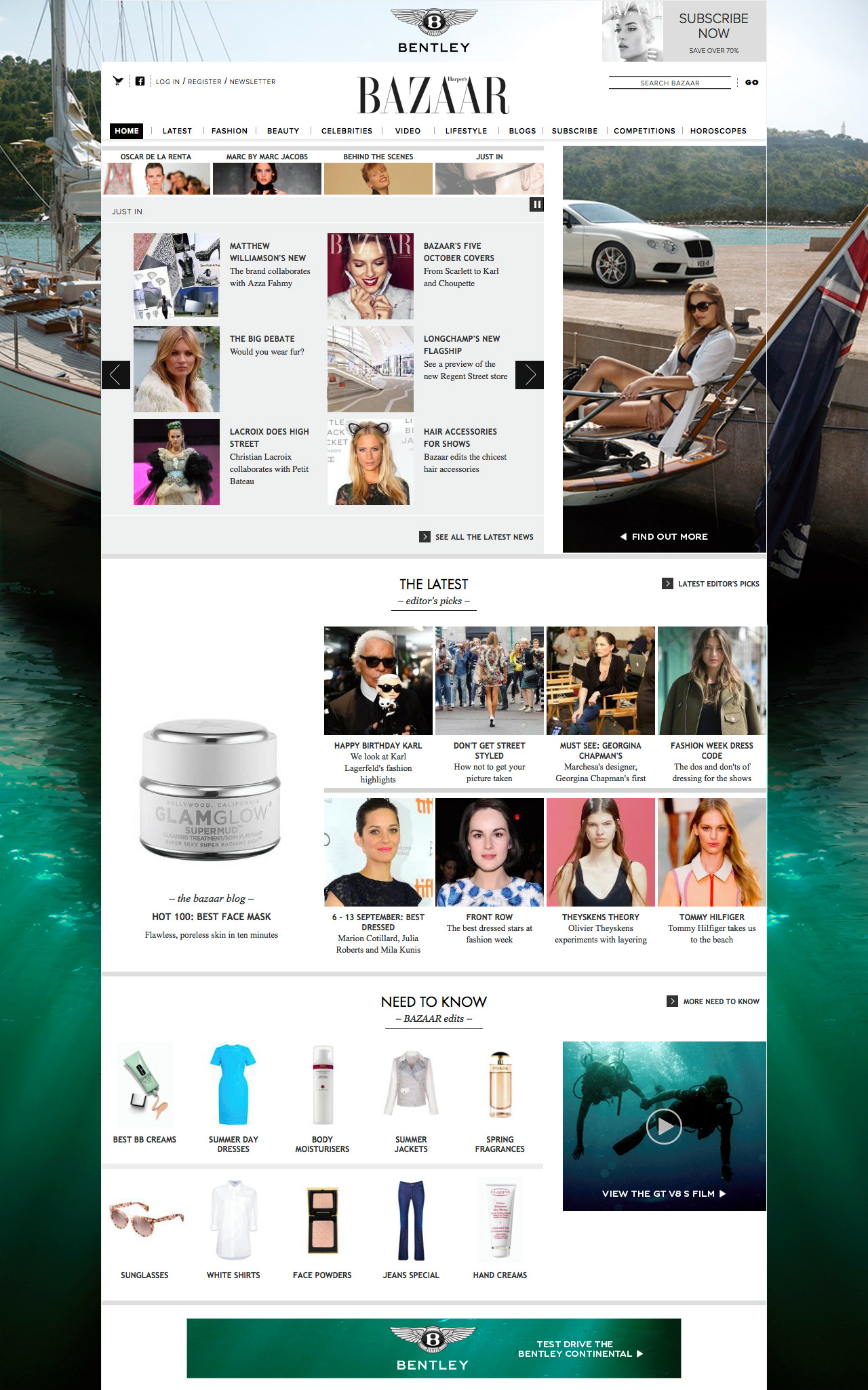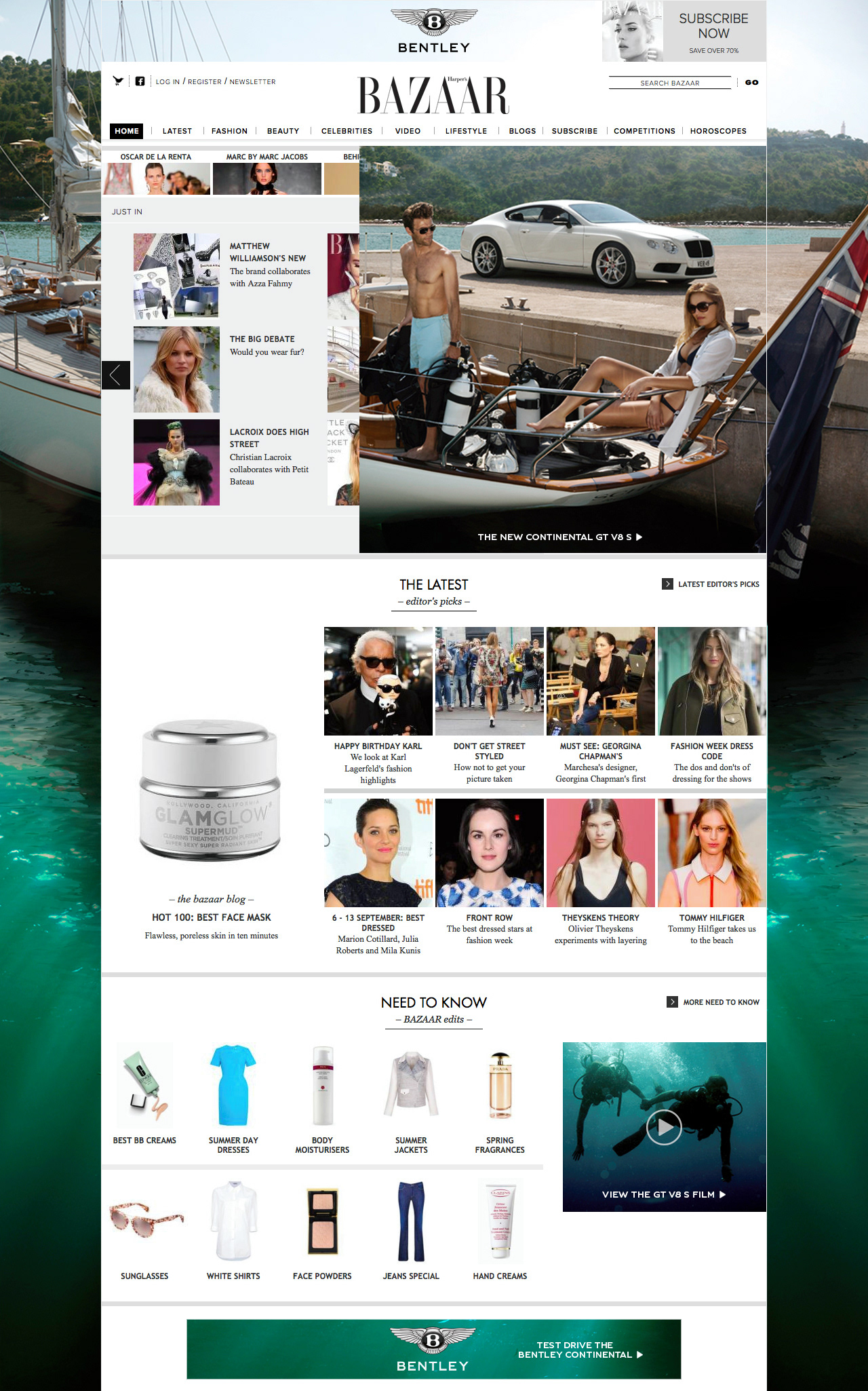 Web page takeover for Bentley's Continental GT V8 S launch campaign. Design and art direction for digital build, including expanding Flash banner and rich media MPU. Also includes the MPU film and a look at the full campaign film.
