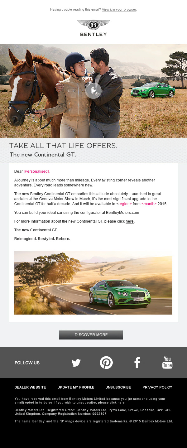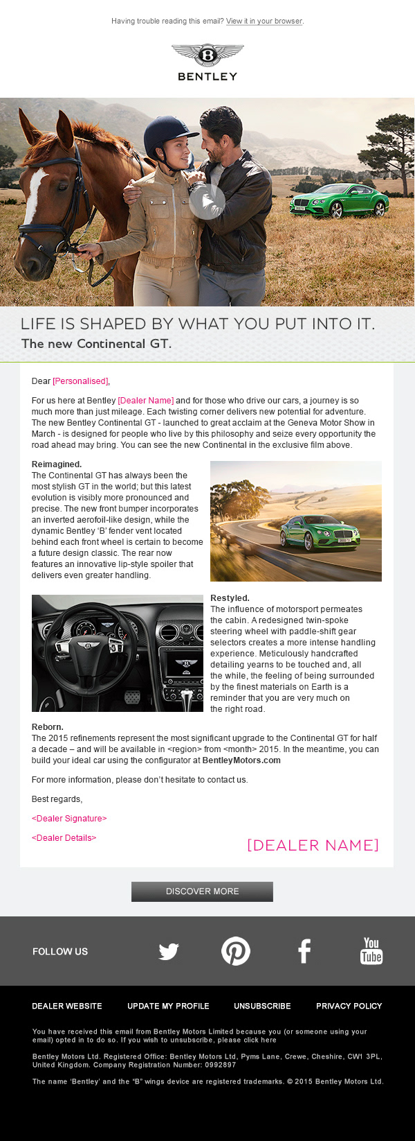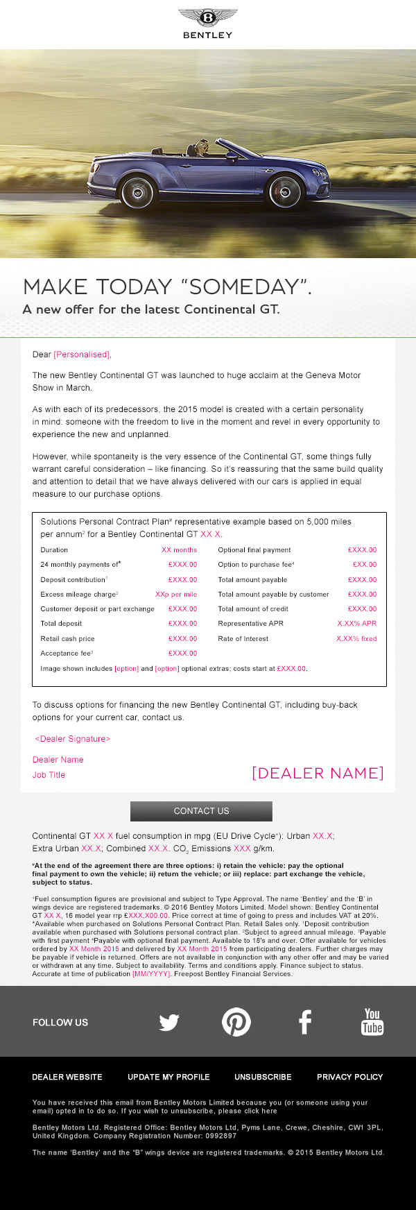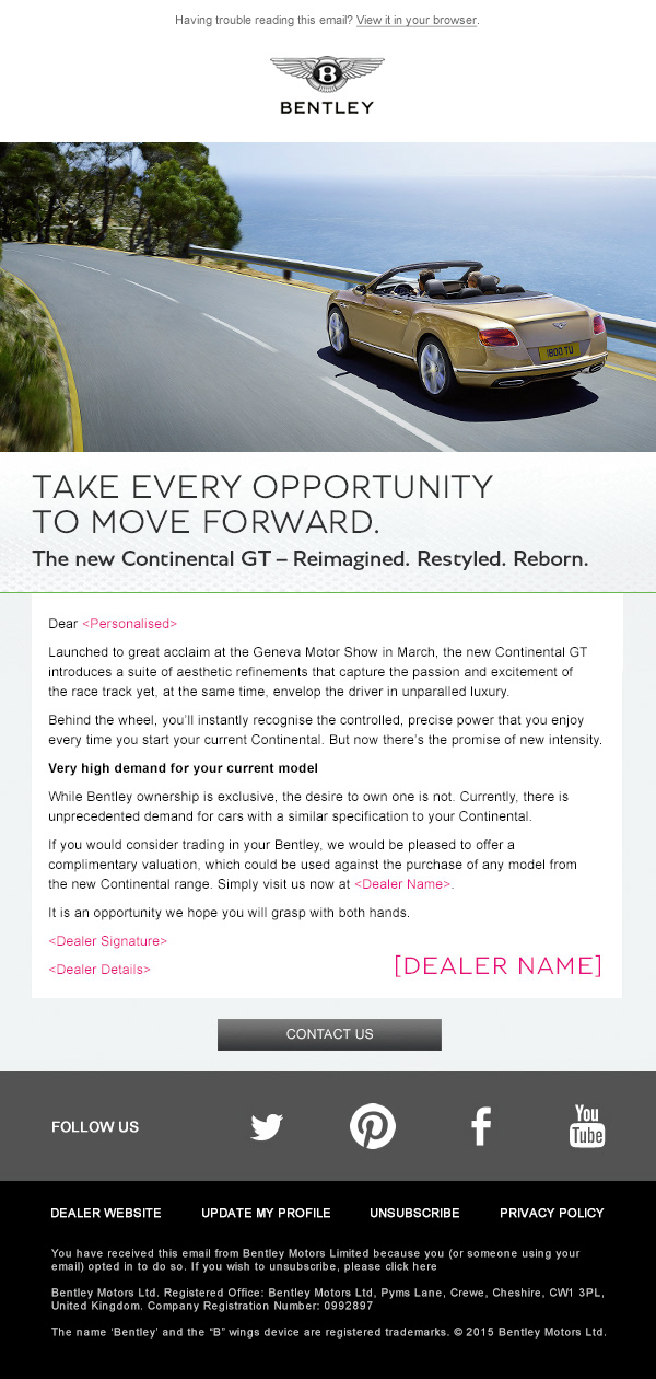 eDM comms and press for the re-styled MY16 Continental range campaign as part of ongoing brand development.
