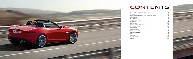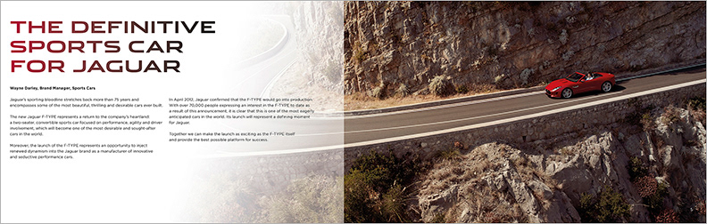 Design and artwork production for the Jaguar F-TYPE launch campaign guide.