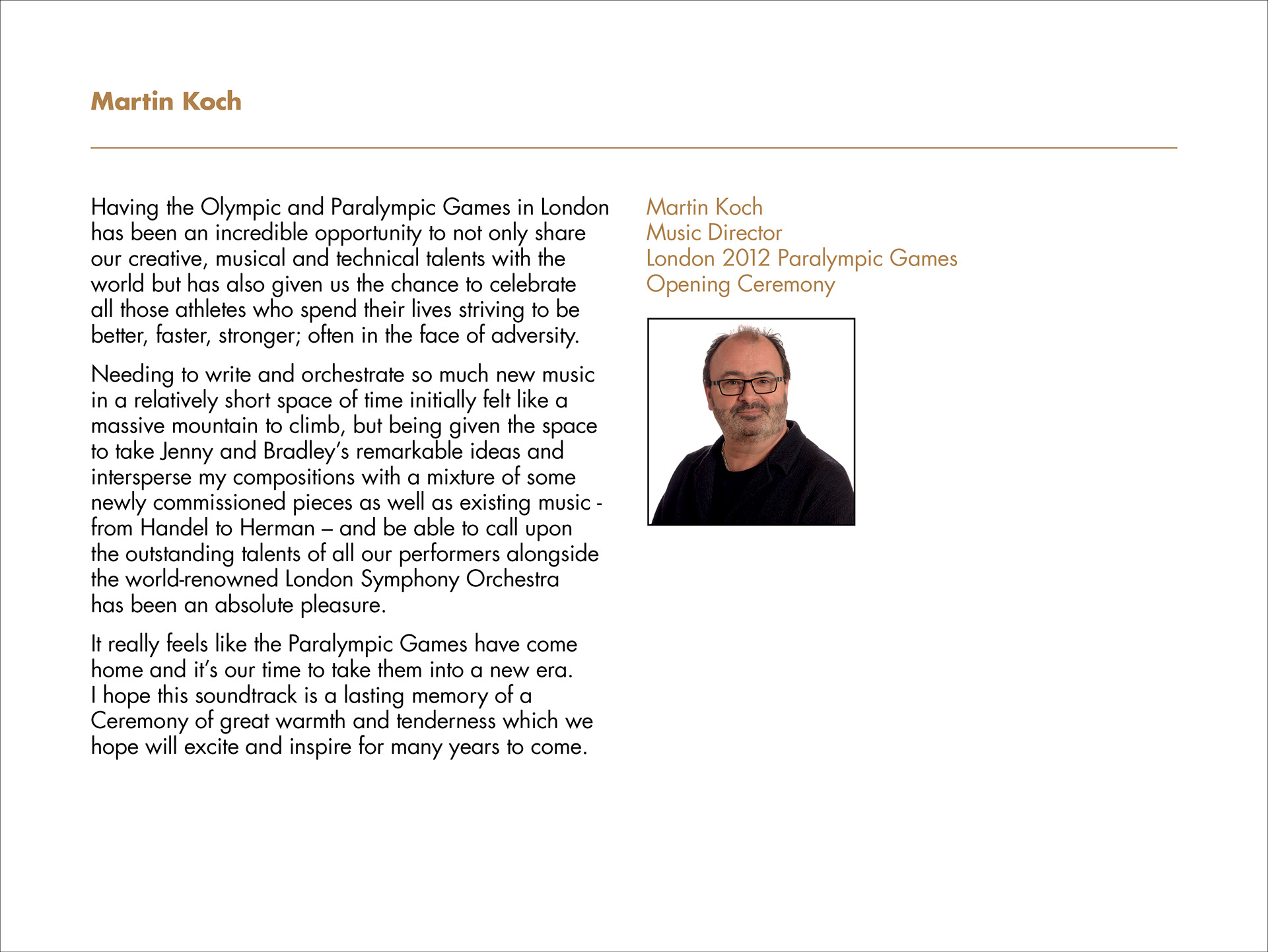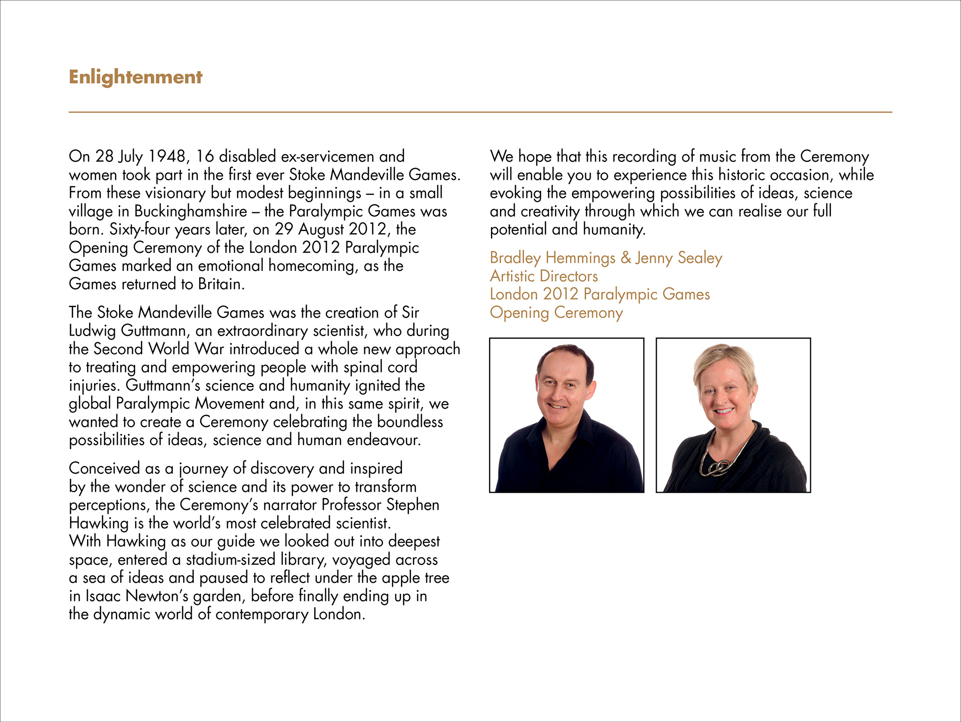 Booklet design for the digital release of the music for the opening ceremony of the London 2012 Paralympic Games.
