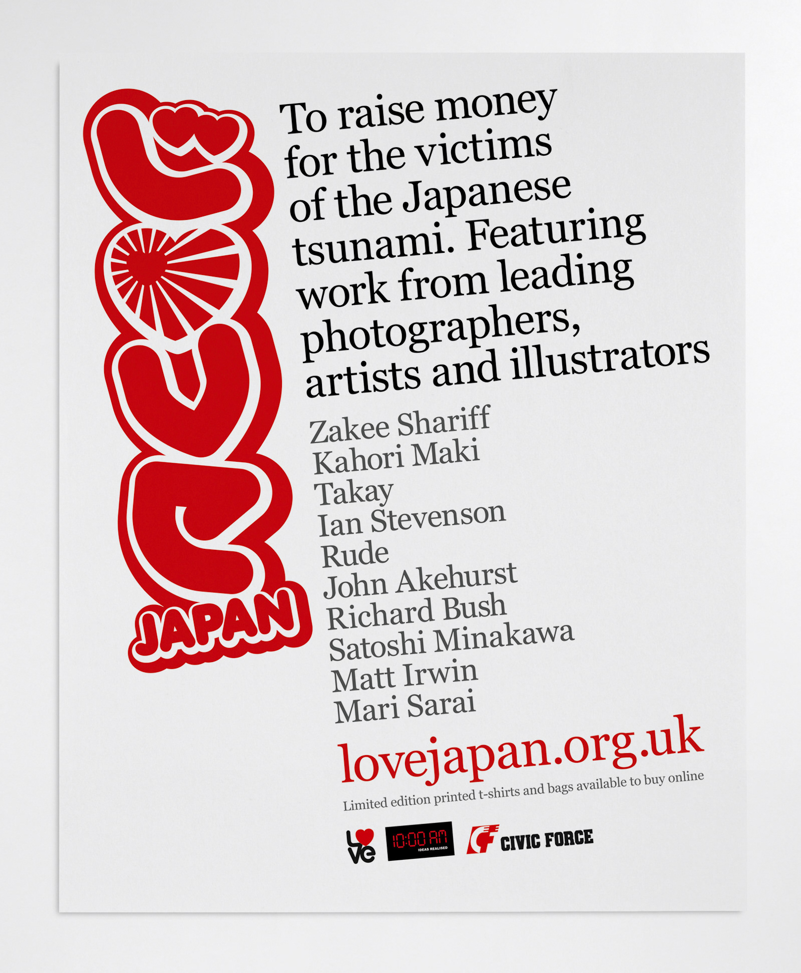 Logotype, identity and print collateral for a charity project in aid of victims of the Japanese tsunami.